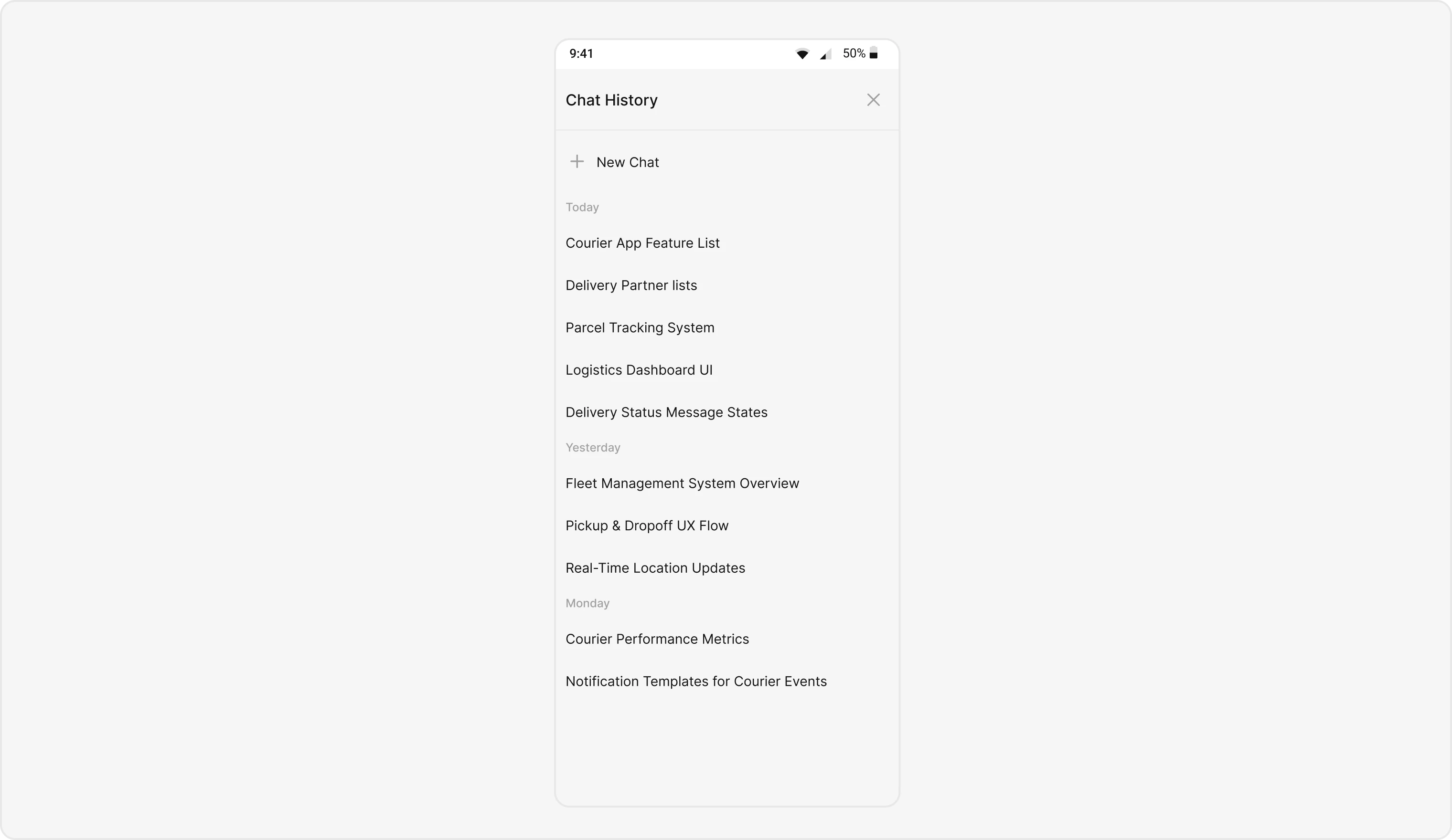 - Verify that the AI assistant chat history list appears with past conversation items.