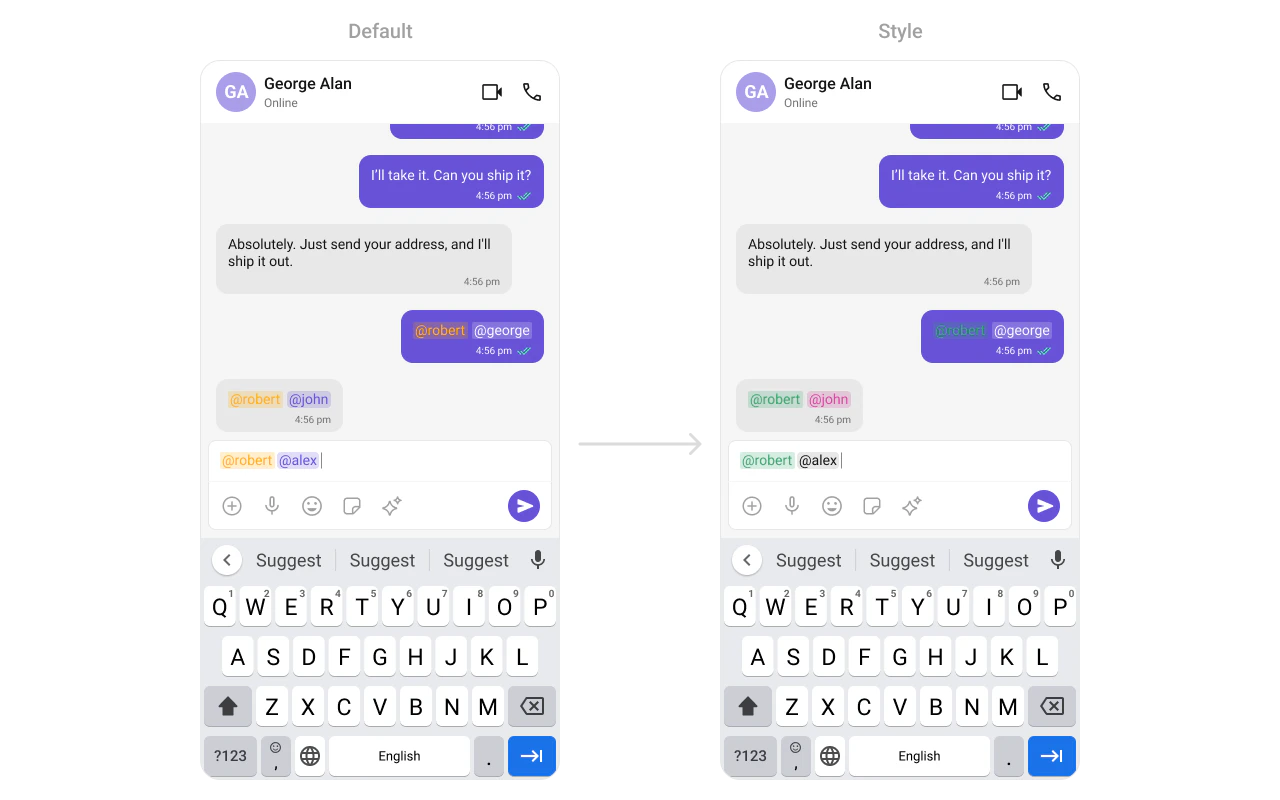 Customize mentions in incoming and outgoing message bubbles:
