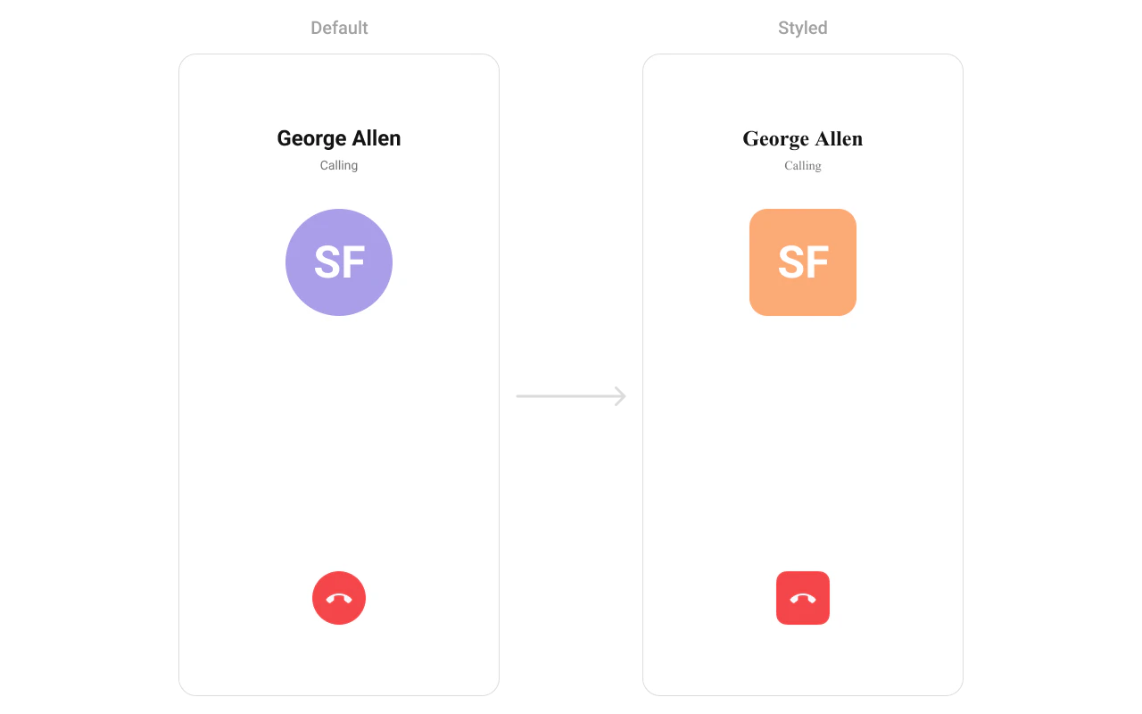| Subtitle view | setSubtitleView(Function2<Context, Call, View>) | Subtitle text (e.g., “Calling…”) |