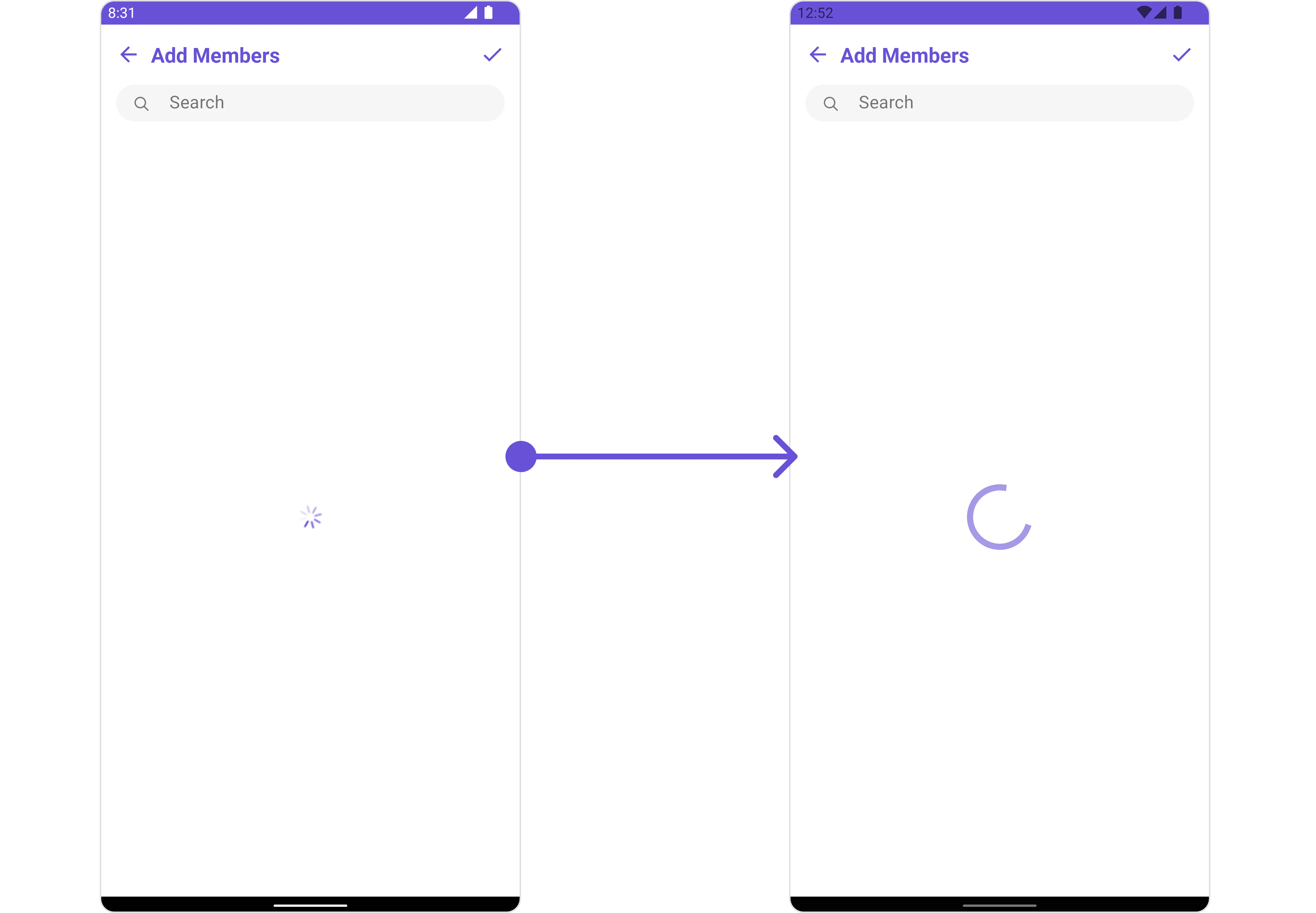 | Property | Description | Code | | --------------------------- | ----------------------------------------------------------------------------------------------------------------------------------------------- | ------------------------------------------------ | --- | | Group | The group to which the users selected will be added. A required parameter. | .setGroup(Group) | | Title | Used to set title in the app bar | .setTitle(String) | | Style | Used to set styling properties | .setStyle(AddMembersStyle) | | Avatar Style | Used to customise the Avatar of the group member | .setAvatarStyle(AvatarStyle) | | Status Indicator Style | Used to customise the status indicator shown if a group member is online | .setStatusIndicatorStyle(StatusIndicatorStyle) | | Search Placeholder Text | Used to set search placeholder text | .setSearchPlaceholderText(String) | | Back Icon | Used to set back button icon | .backIcon(@DrawableRes int res) | | Show Back Button | Used to toggle visibility for back button | .showBackButton(boolean) | | Search Box Icon | Used to set search Icon in the search field | .setSearchBoxIcon(@DrawableRes int res) | | Hide Search | Used to toggle visibility for search box | .hideSearch(boolean) | | Hide Error | Used to hide error on fetching users and failing to add selected users to the group. | .hideError(boolean) | | Hide Separator | Used to hide the divider separating the user items | .hideSeparator(boolean) | | Hide Section Separator | Used to hide the text separating grouped user items | .hideSectionSeparator(boolean) | | Disable Users Presence | Used to control visibility of user indicator shown if user is online | .disableUsersPresence(boolean) | | Selection Icon | Used to override the default selection complete icon | .setSelectionIcon(@DrawableRes int res) | | Submit Icon | Used to override the default selection complete icon | .setSubmitIcon(@DrawableRes int res) | | Selection Mode | Used to set the number of users that can be selected. By default it is SelectionMode.multiple. SelectionMode can be single, multiple or none. | .setSelectionMode(SelectionMode) | |
