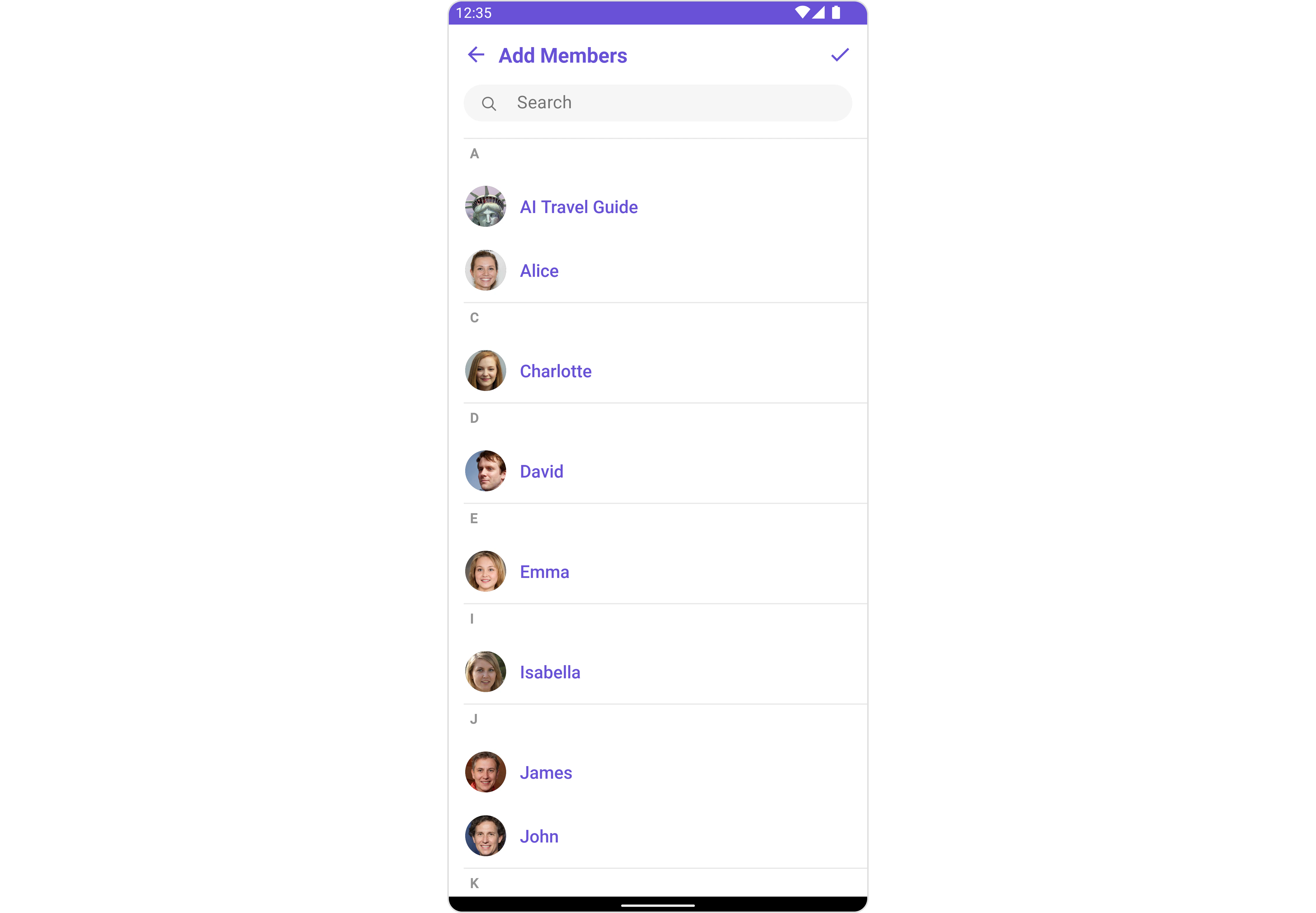 For advanced-level customization, you can set custom views to the component. This lets you tailor each aspect of the component to fit your exact needs and application aesthetics. You can create and define your own views, layouts, and UI elements and then incorporate those into the component. TheAdd Members component does not provide additional functionalities beyond this level of customization.