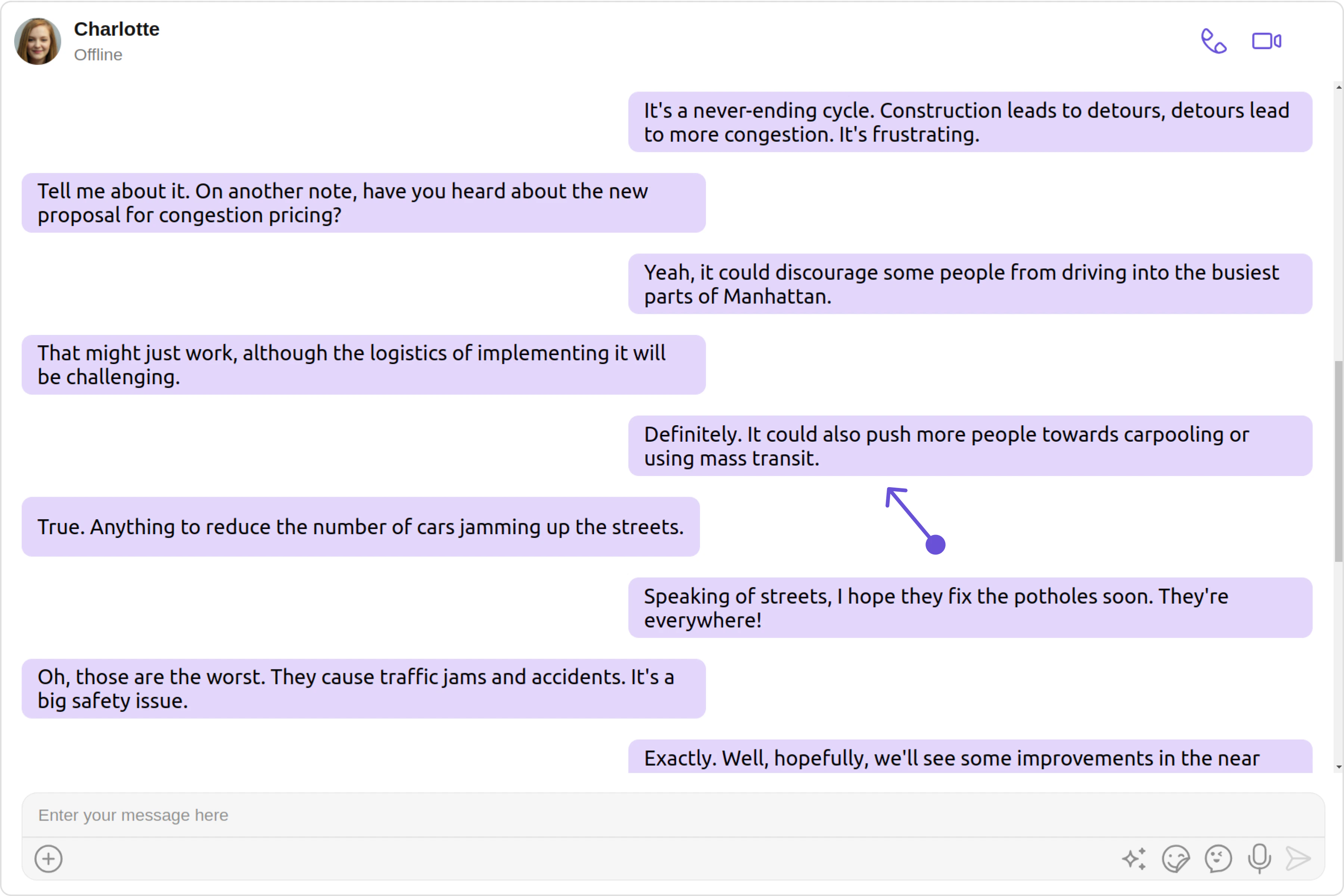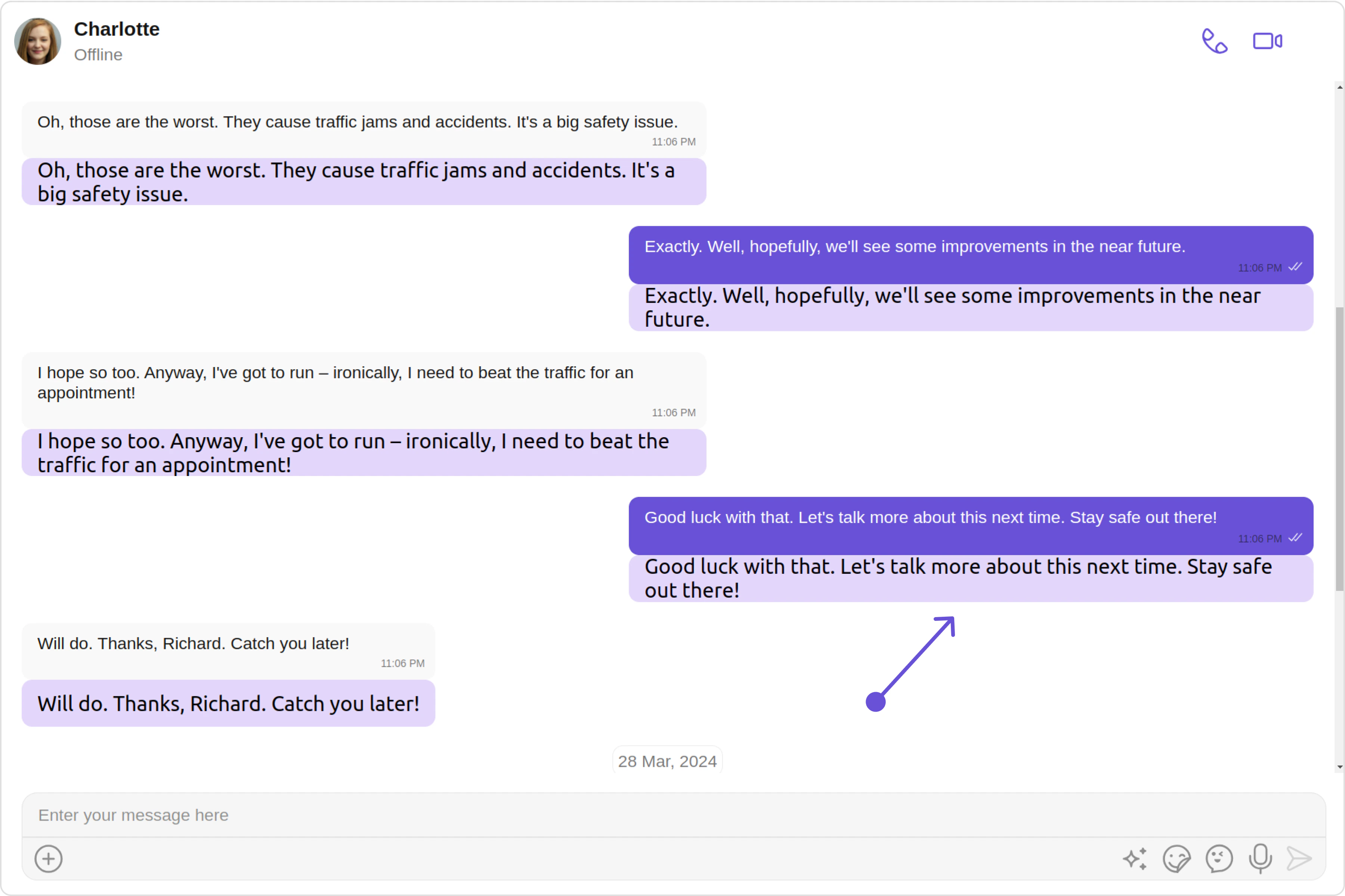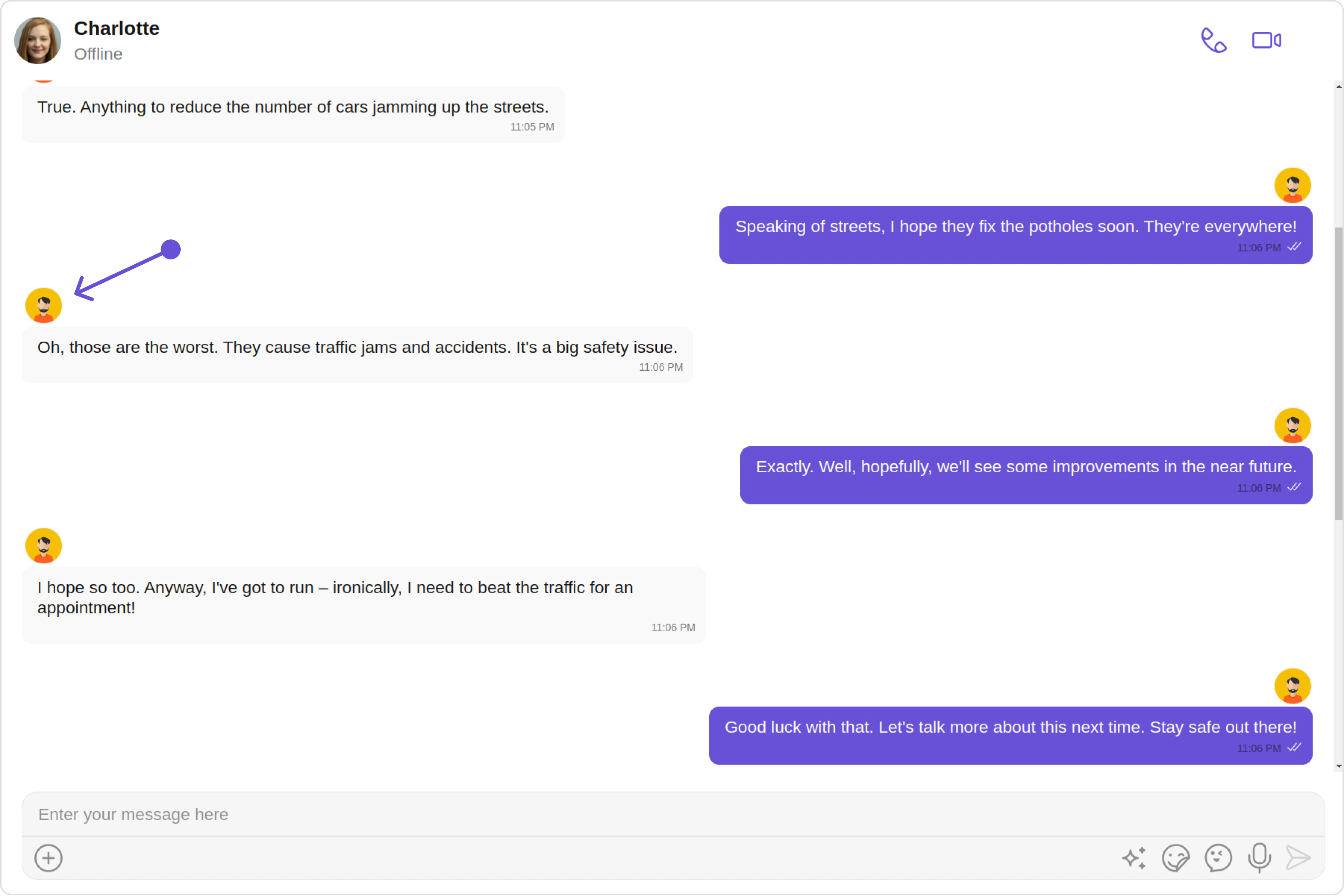 2. Header view: This displays the sender’s name and is especially useful in group chats where multiple users are sending messages.