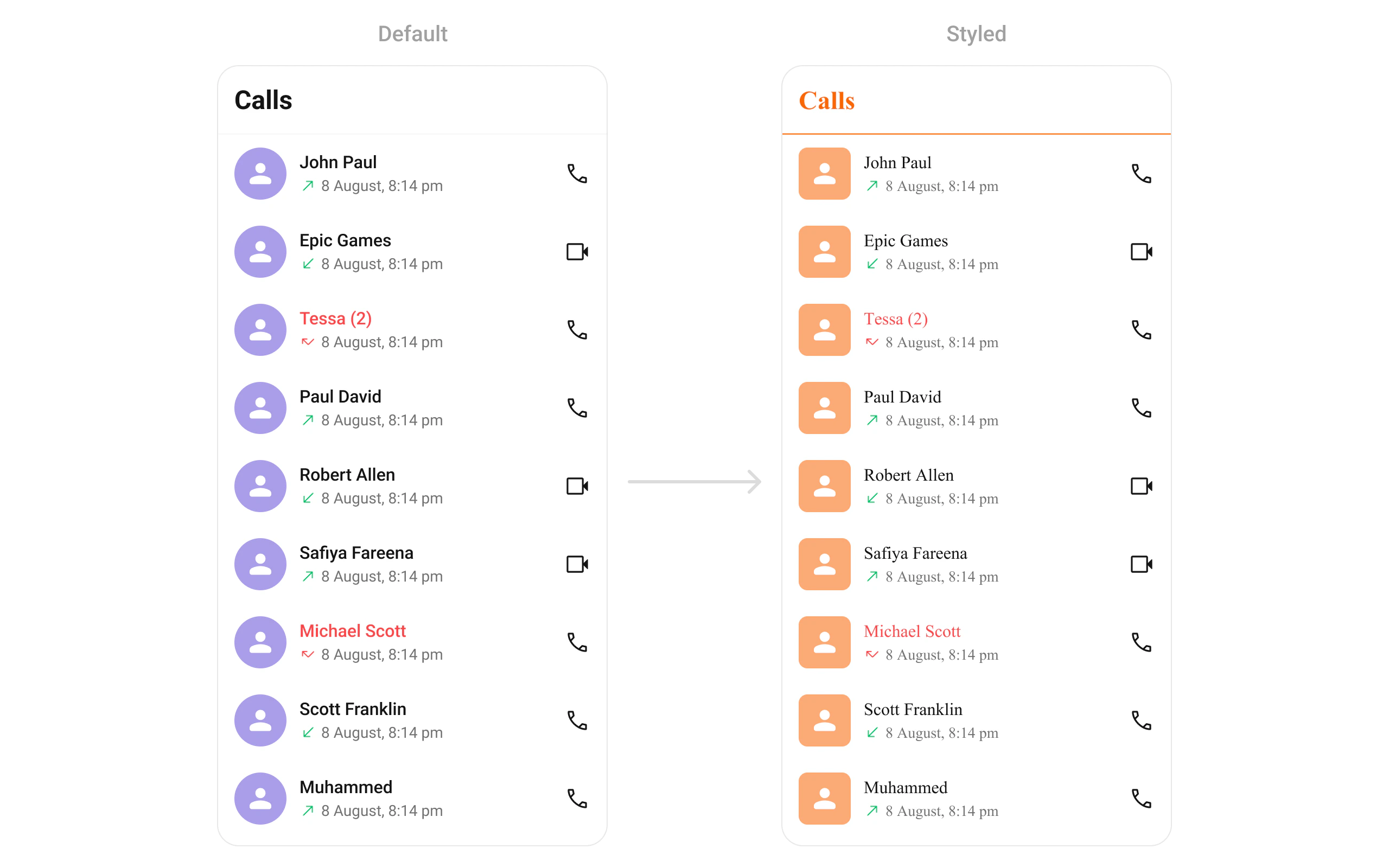 With this property, you can assign a custom ListItem to the Call Logs Widget. Example Here is the complete example for reference:- Dart