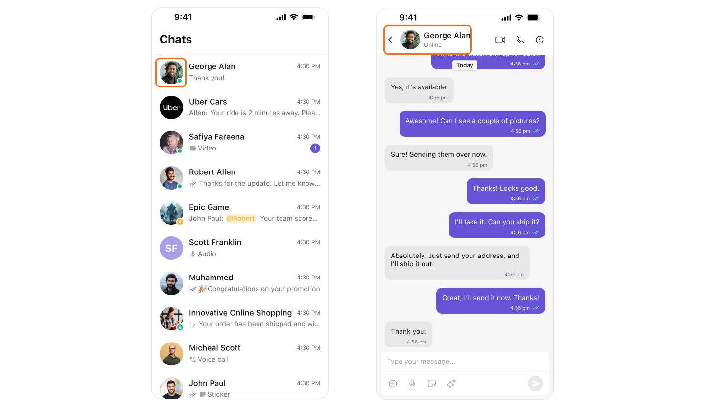 // - CometChatMessageHeader (shows "typing..." below user name)