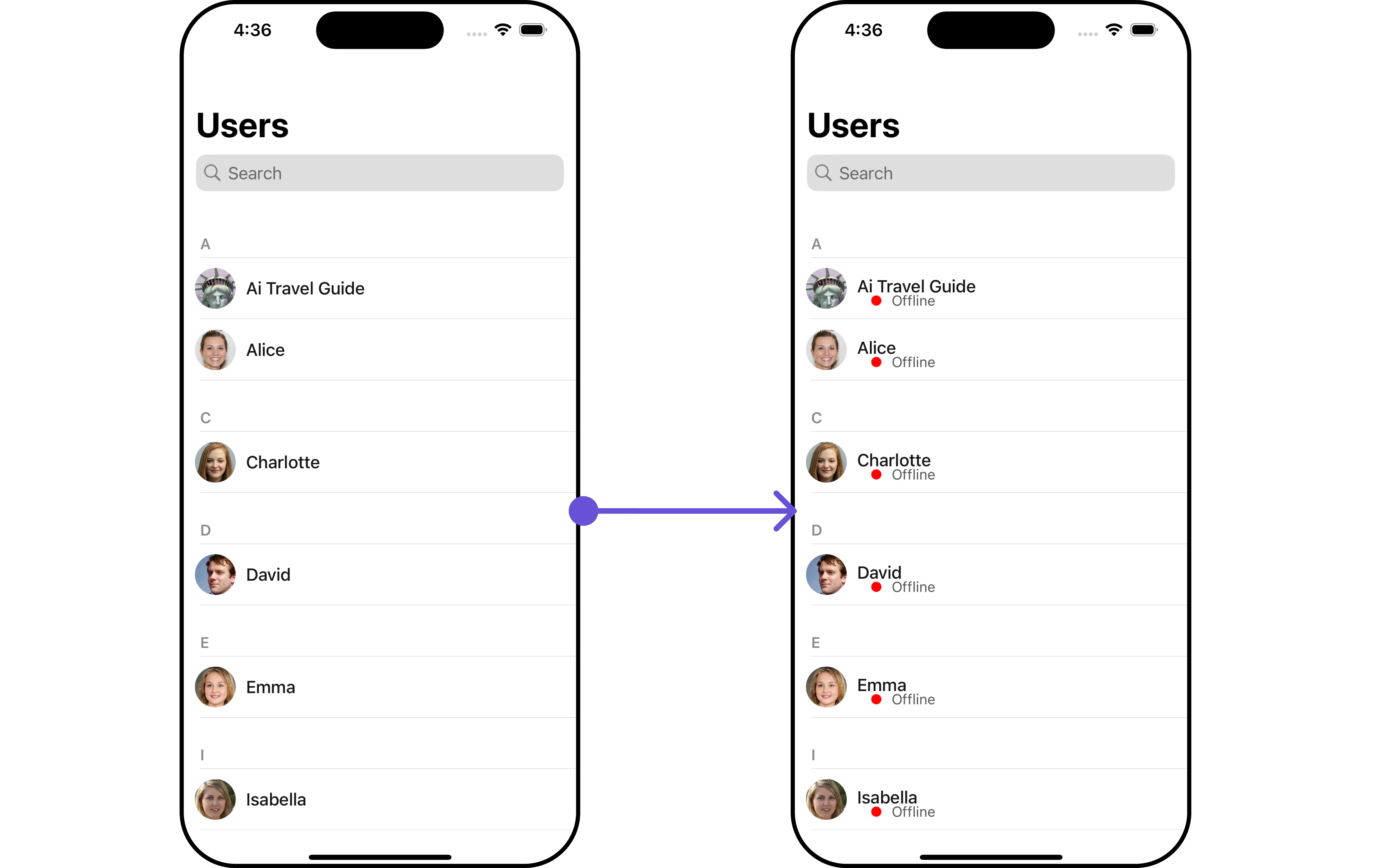 To fit your app’s design requirements, you can customize the appearance of the users component. We provide exposed methods that allow you to modify the experience and behavior according to your specific needs.Style