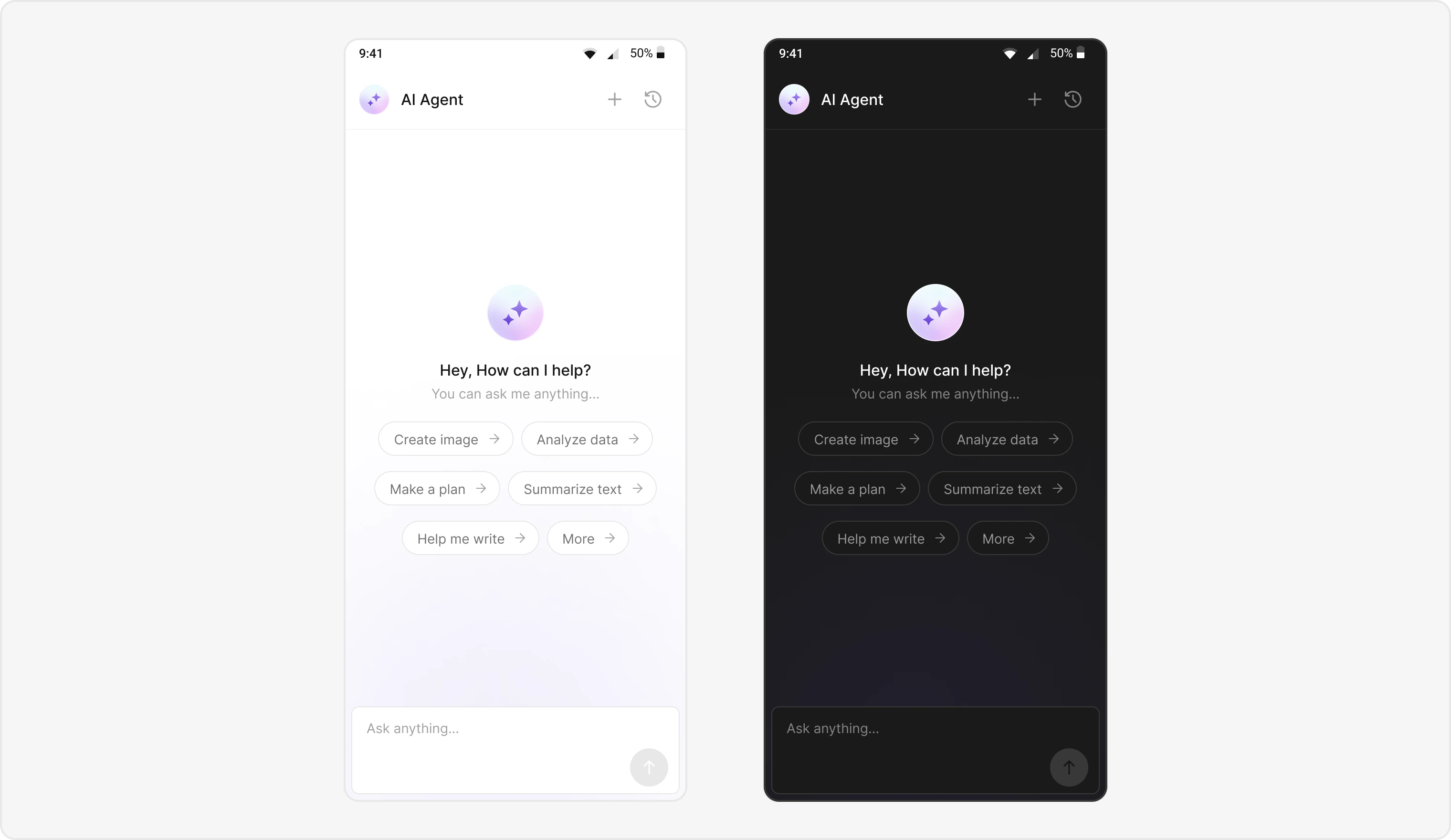 Define custom themes for the message list and composer to differentiate AI agent chats.- TypeScript
