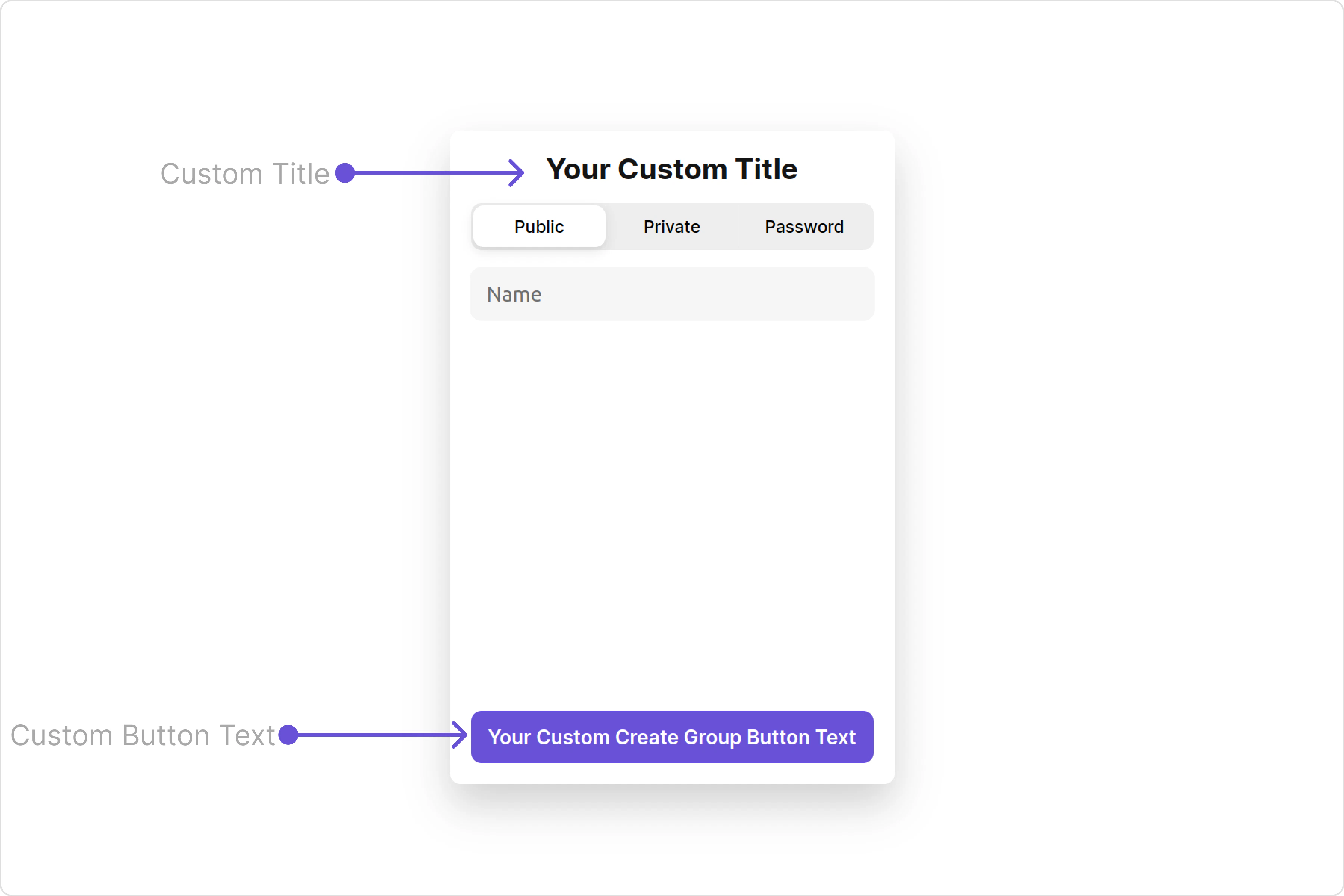 To fit your app’s design requirements, you can customize the appearance of the Create Groups component. We provide exposed methods that allow you to modify the experience and behavior according to your specific needs.