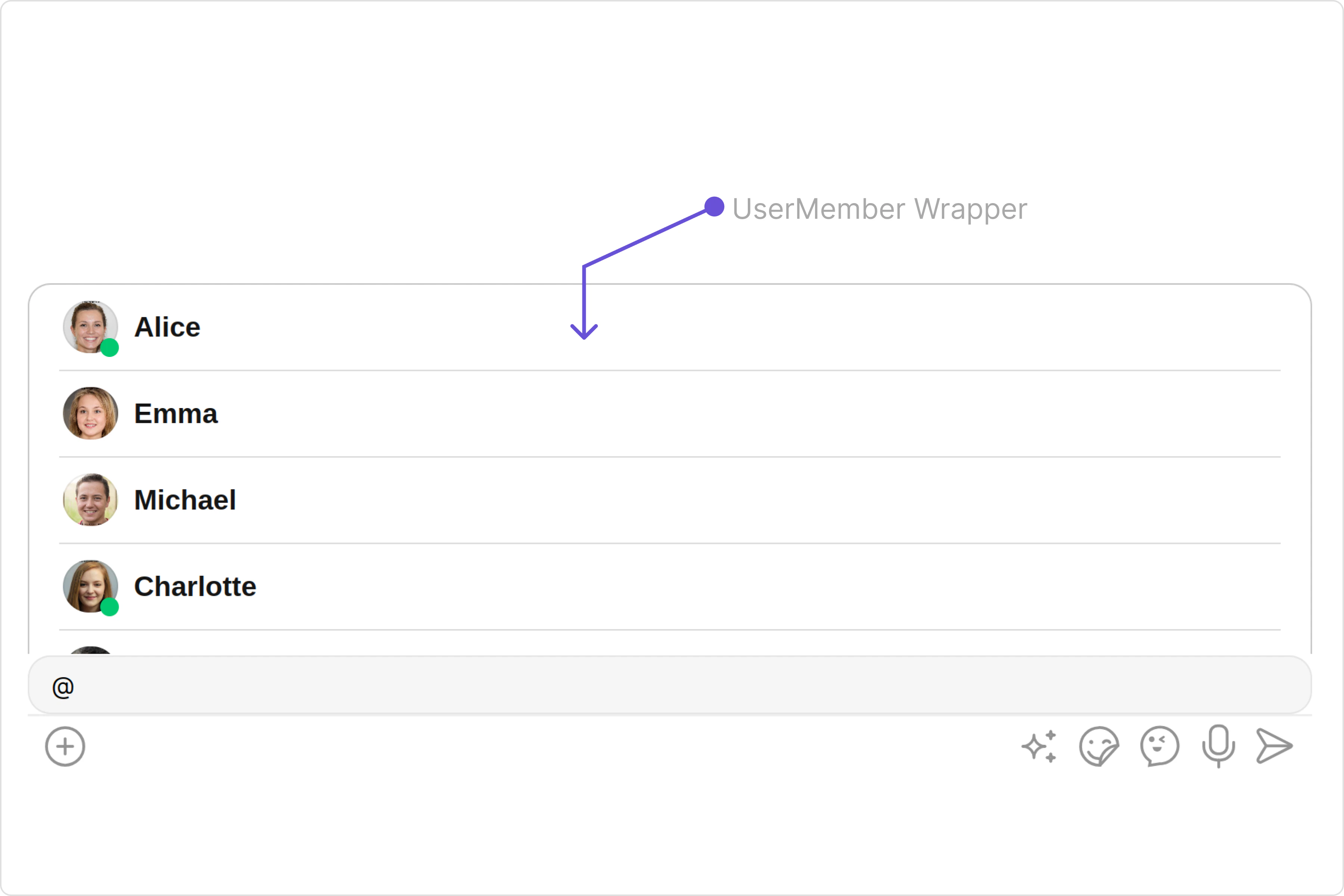 From the MessageComposer, you can navigate to the UserMemberWrapper component as shown in the image.