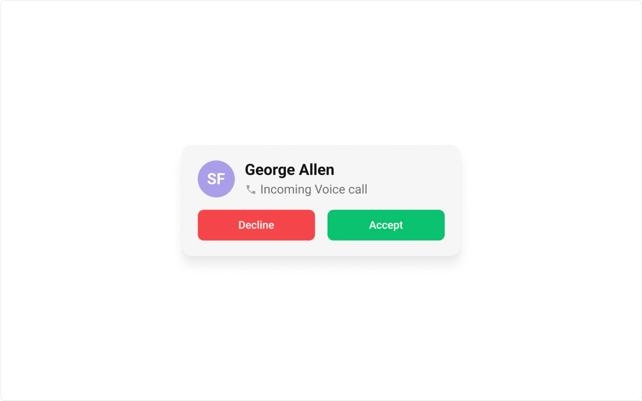 To fit your app’s design requirements, you can customize the appearance of the Incoming Call component. We provide exposed methods that allow you to modify the experience and behavior according to your specific needs.Style